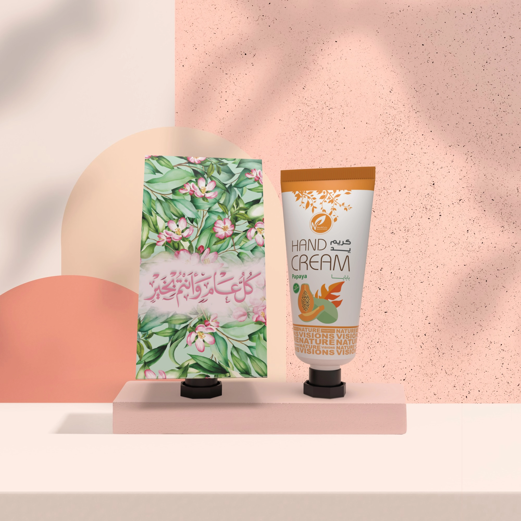 توزيعات العيد مع حامل ميني كريم اليد بابايا - لون أخضر - كل عام وأنتم بخير ( 5 قطع )