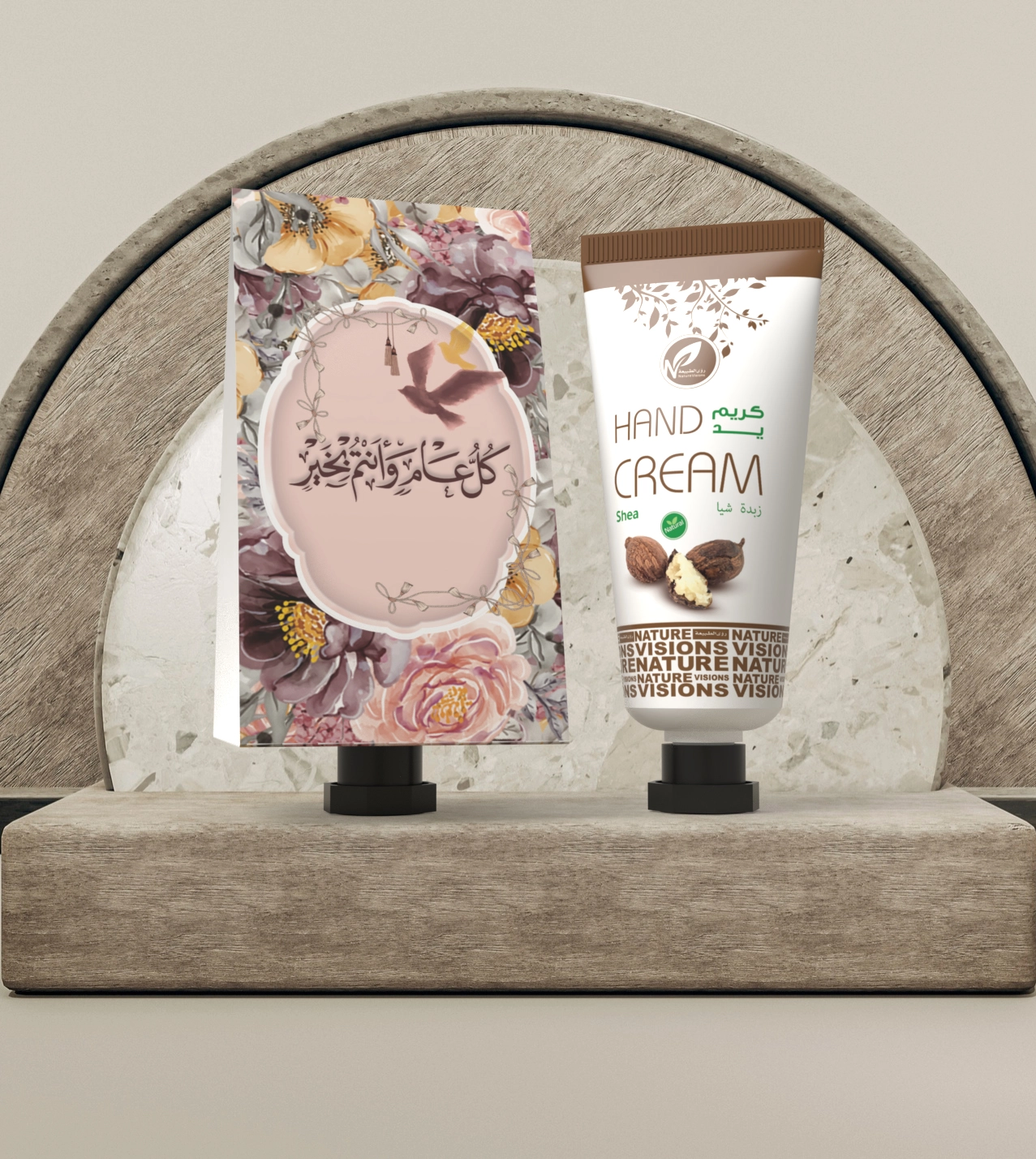 توزيعات العيد مع حامل ميني كريم اليد شيا - لون وردي - كل عام وأنتم بخير ( 5 قطع )