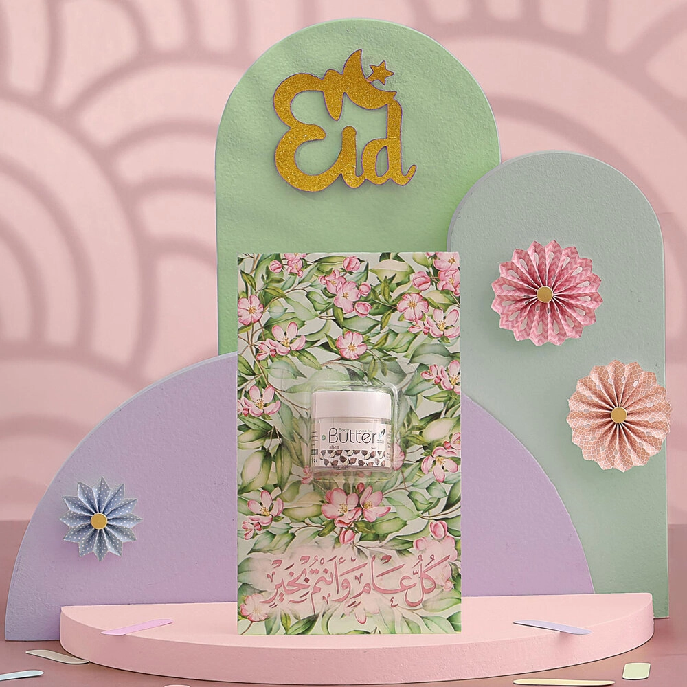 توزيعات العيد ميني زبدة الجسم شيا - لون أخضر - كل عام وأنتم بخير ( 5 قطع )