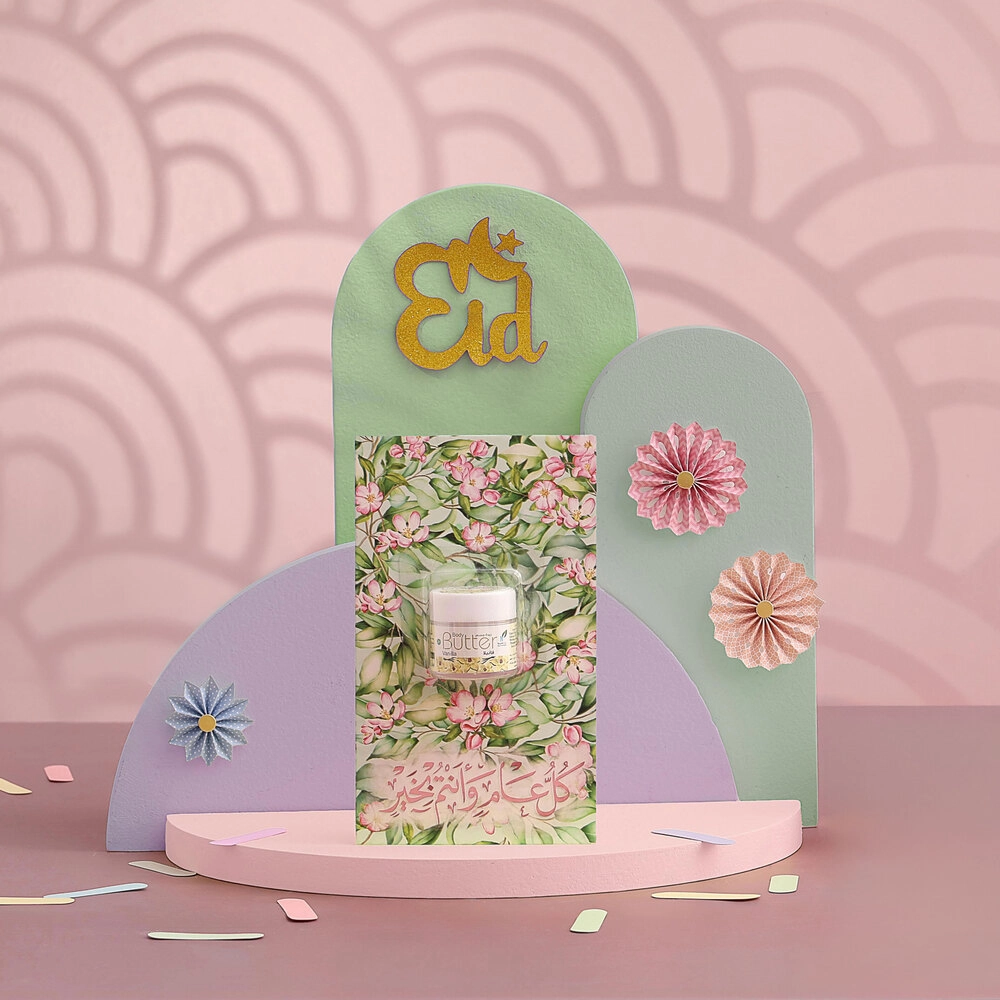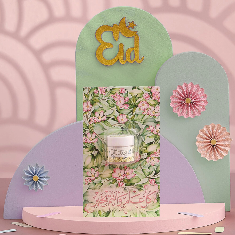 توزيعات العيد ميني زبدة الجسم فانيلا - لون أخضر - كل عام وأنتم بخير ( 5 قطع )
