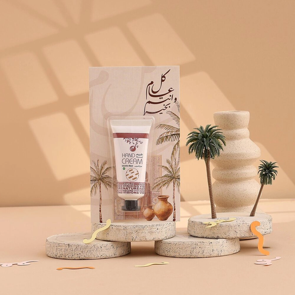 توزيعات العيد ميني كريم اليد عرق السوس - لون بيج - كل عام وأنتم بخير ( 5 قطع )