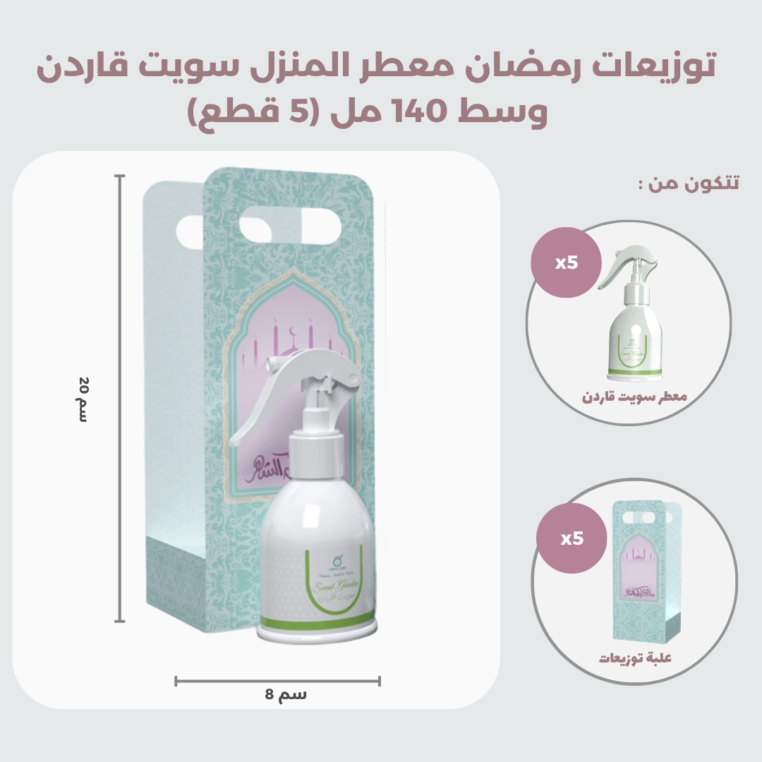 توزيعات رمضان معطر المنزل سويت قاردن وسط 140 مل (5 قطع) ، مناسبة لتوزيعات الهدايا و المناسبات.