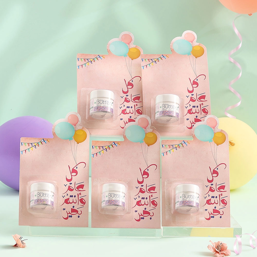 مجموعة توزيعات كل عام وأنتم بخير ميني زبدة الجسم ساكورا ( 5 قطع ) ، مناسب لتوزيعات الهدايا و المناسبات.