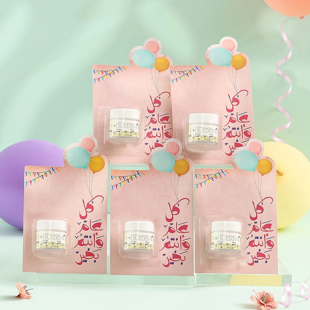مجموعة توزيعات كل عام وأنتم بخير ميني زبدة الجسم فانيلا( 5 قطع ) ، مناسب لتوزيعات الهدايا و المناسبات.