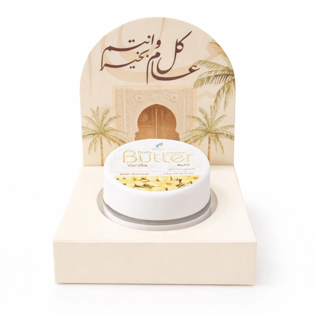 توزيعات ميني زبدة الجسم فانيلا - لون بيج - كل عام وأنتم بخير ( 5 قطع )