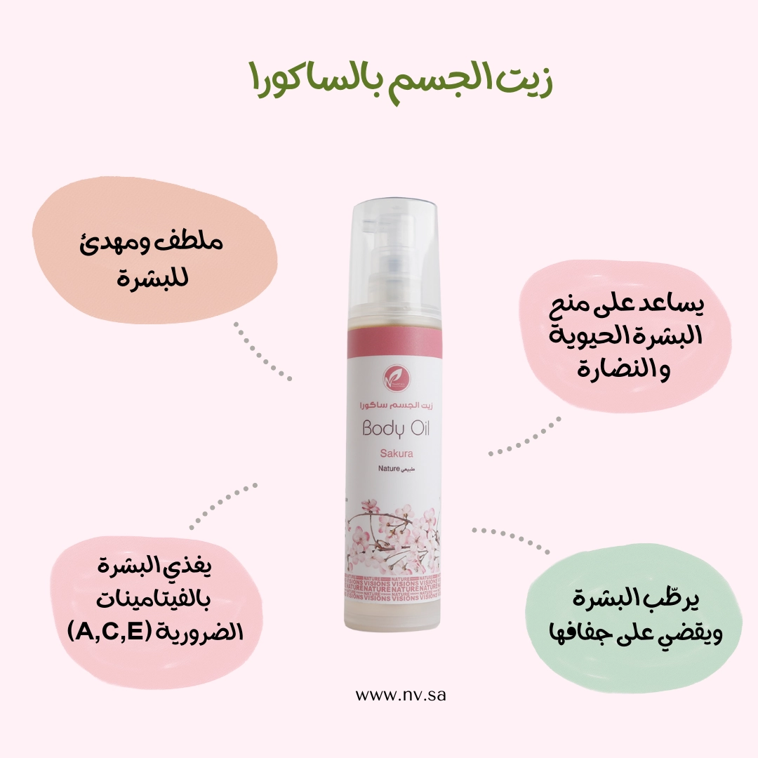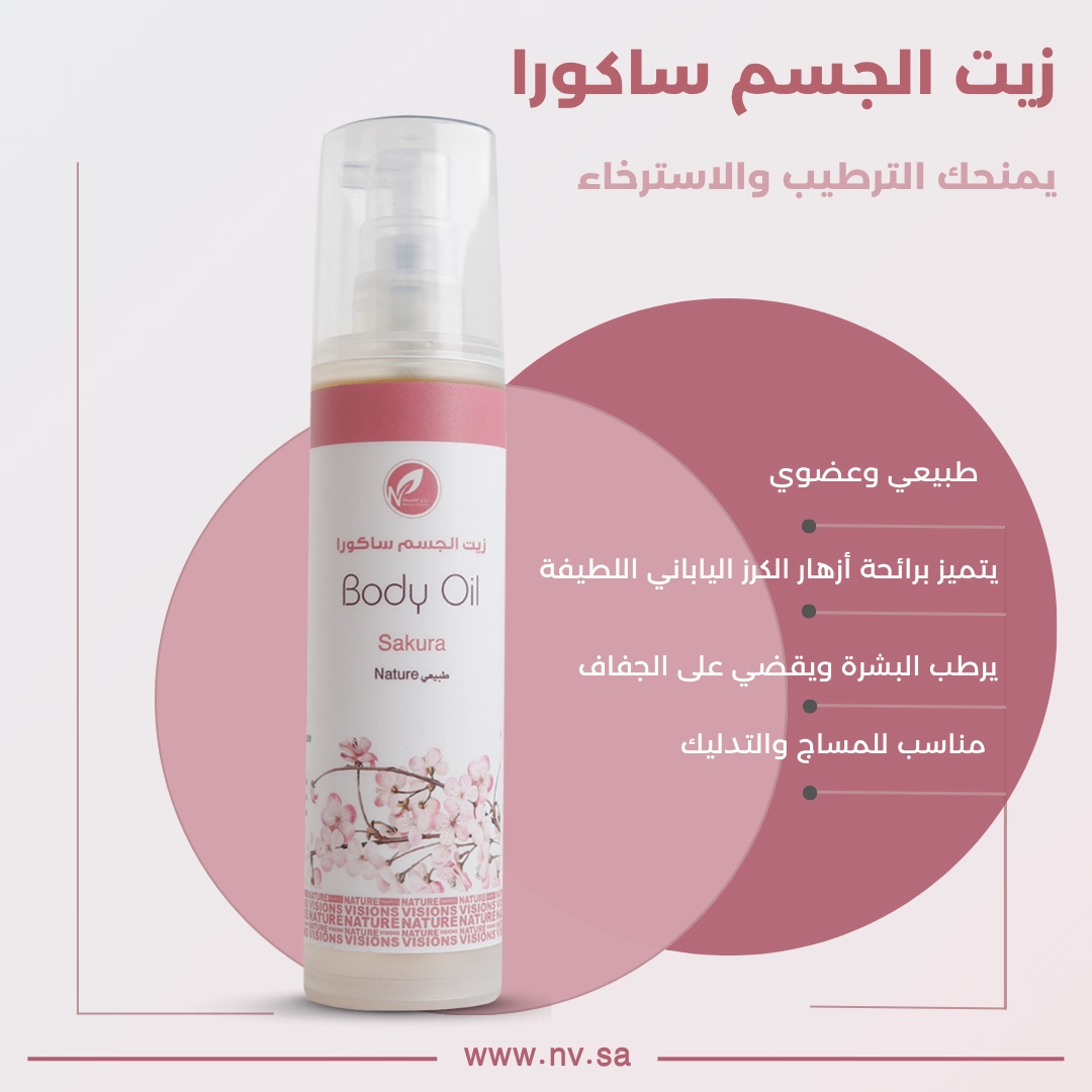 زيت طبيعي يوقظ أحاسيسك، ويمنحك الترطيب والاسترخاء برائحة الكرز الياباني المنعشة( ساكورا )..