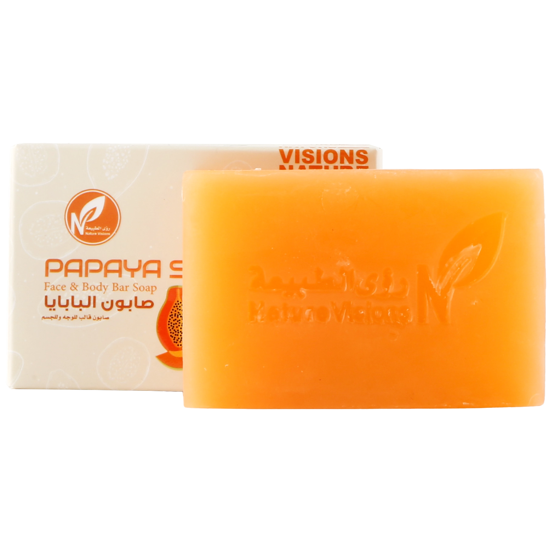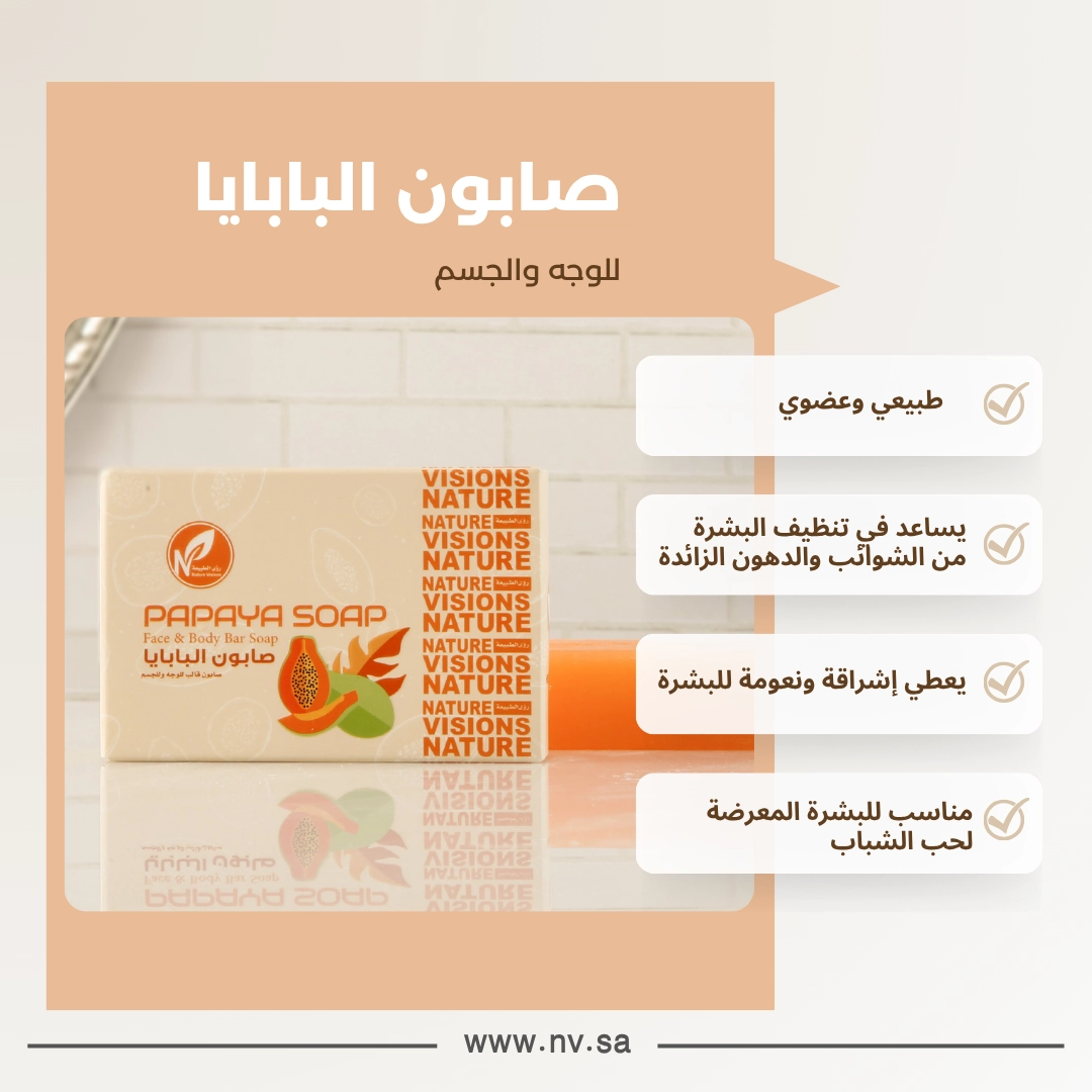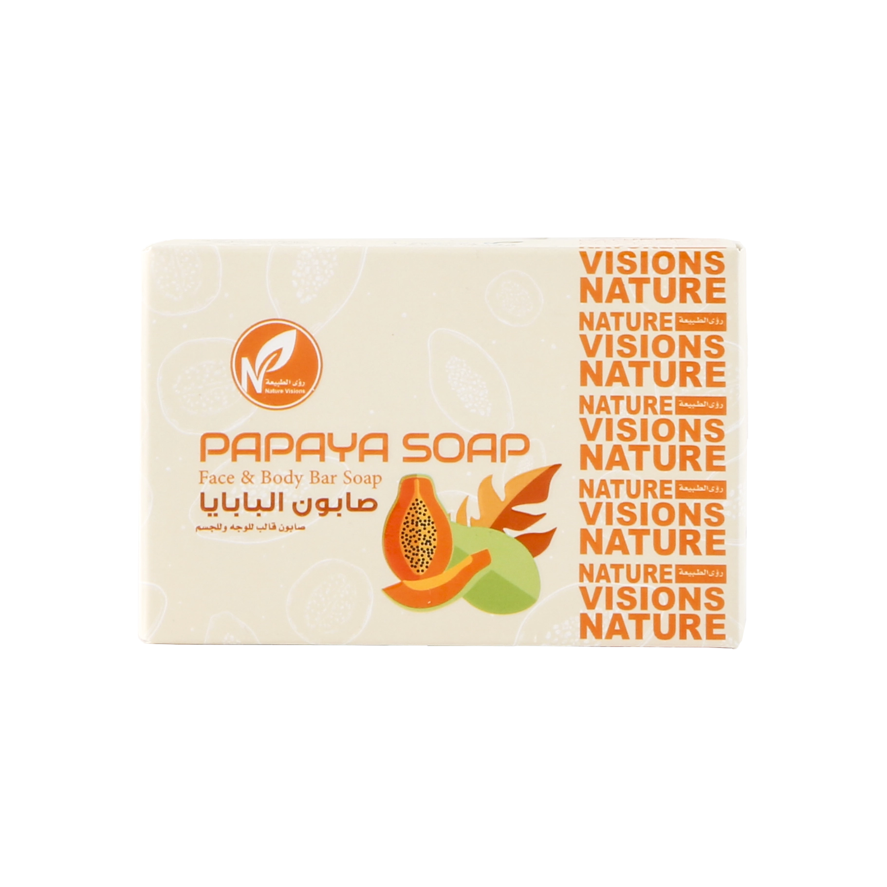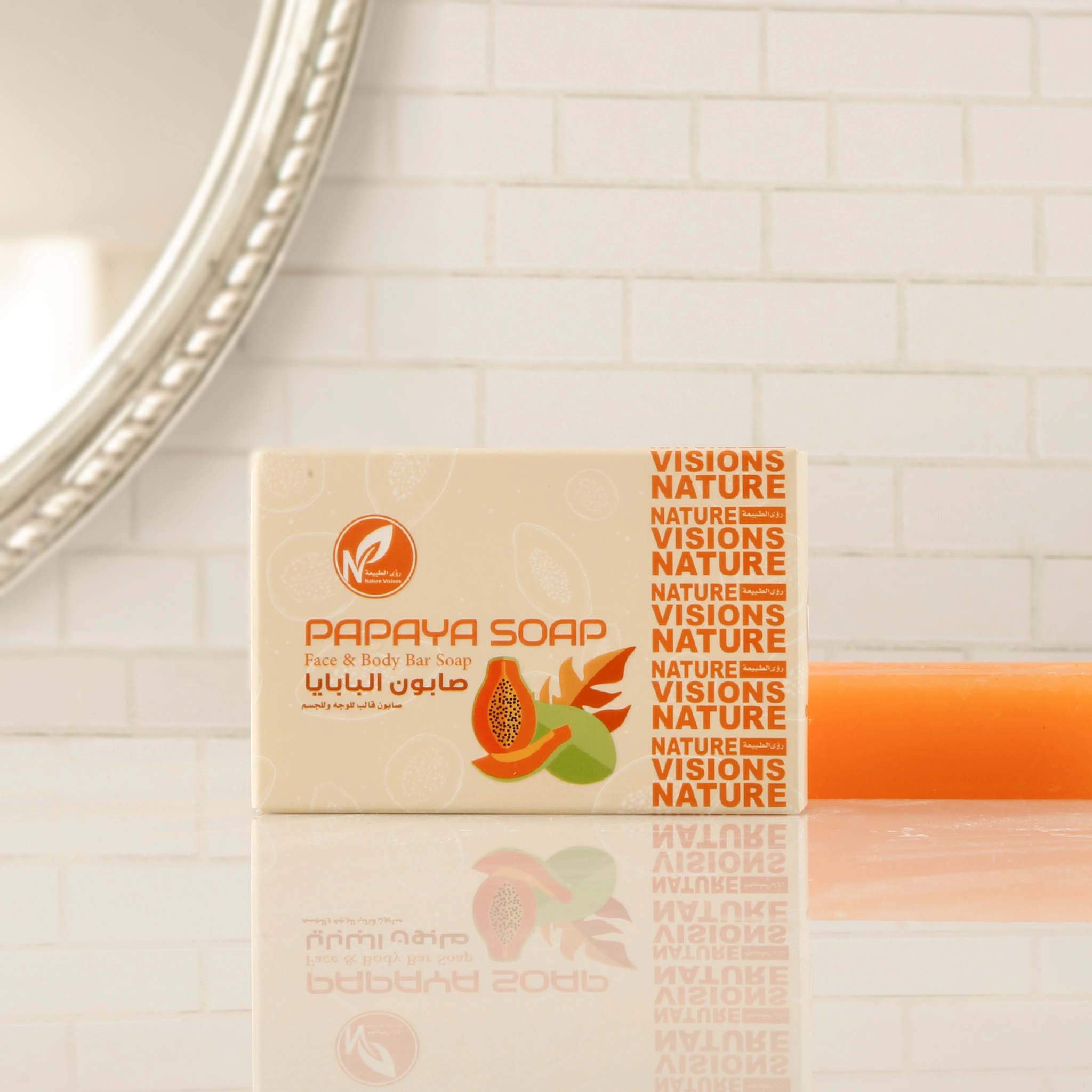 صابون بخلاصة البابايا مع الجلسرين وزيت جوز الهند، وفيتامين E.