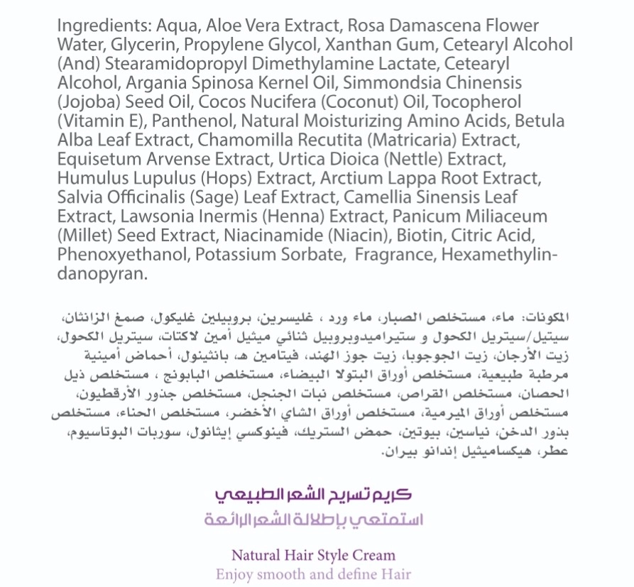 خالي من السيليكون كريم تسريح الشعر يحتوي على خلاصة الحنا حالياً ما نقدر نؤكد إذا خلاصة الحنا تؤثر على الشعر المصبوغ أو لا، لأنه ما فيه دليل علمي واضح ولا تجارب وصلتنا بهذا الخصوص