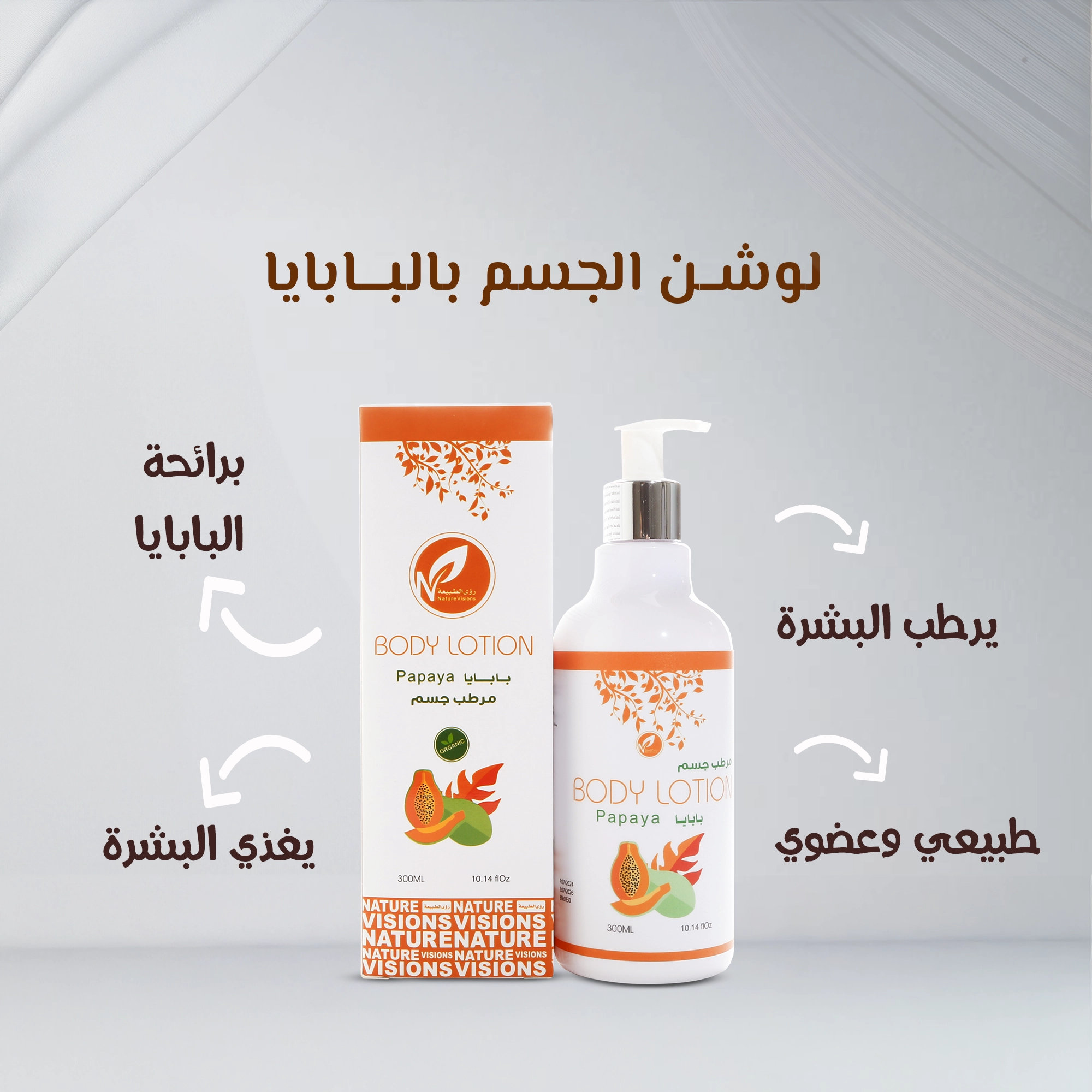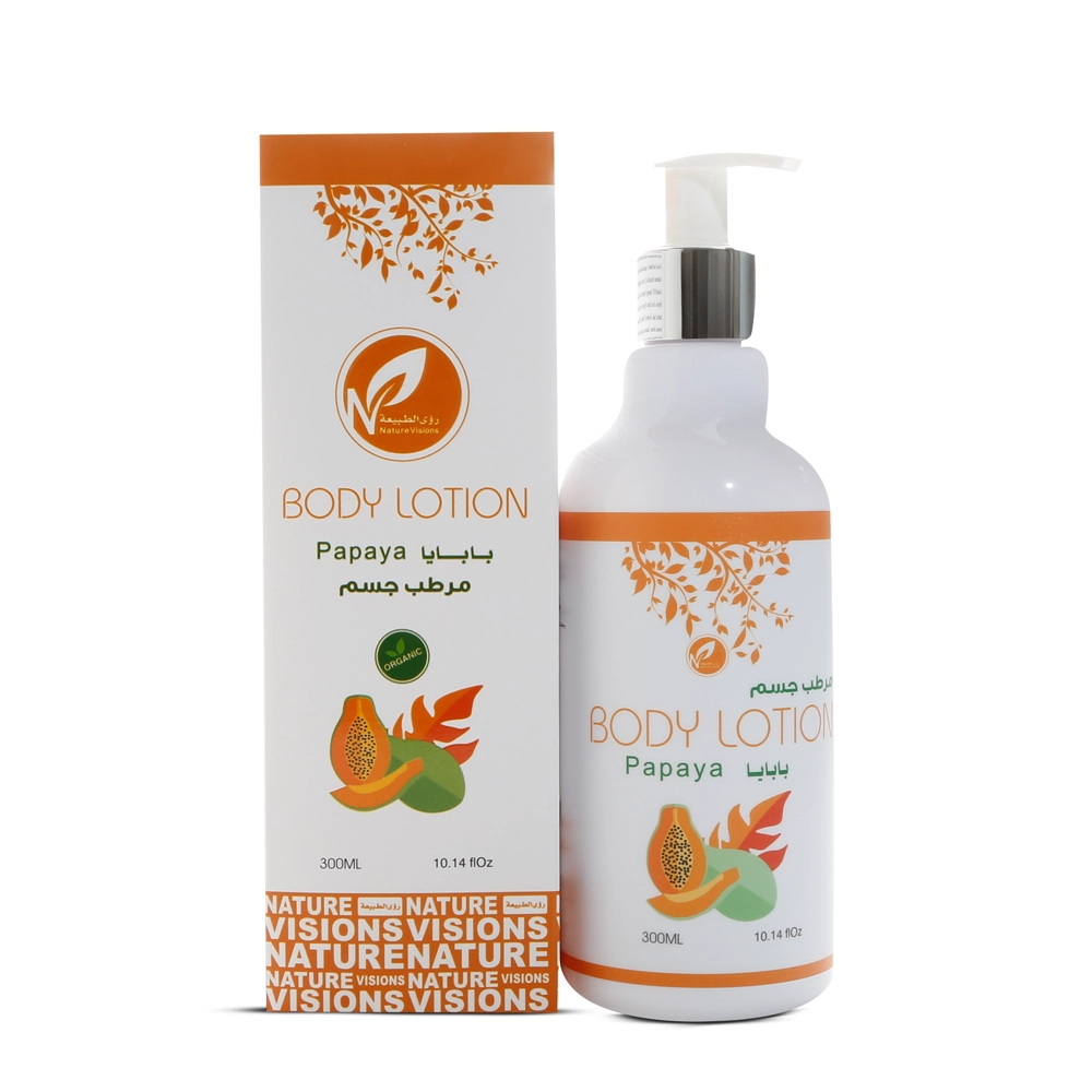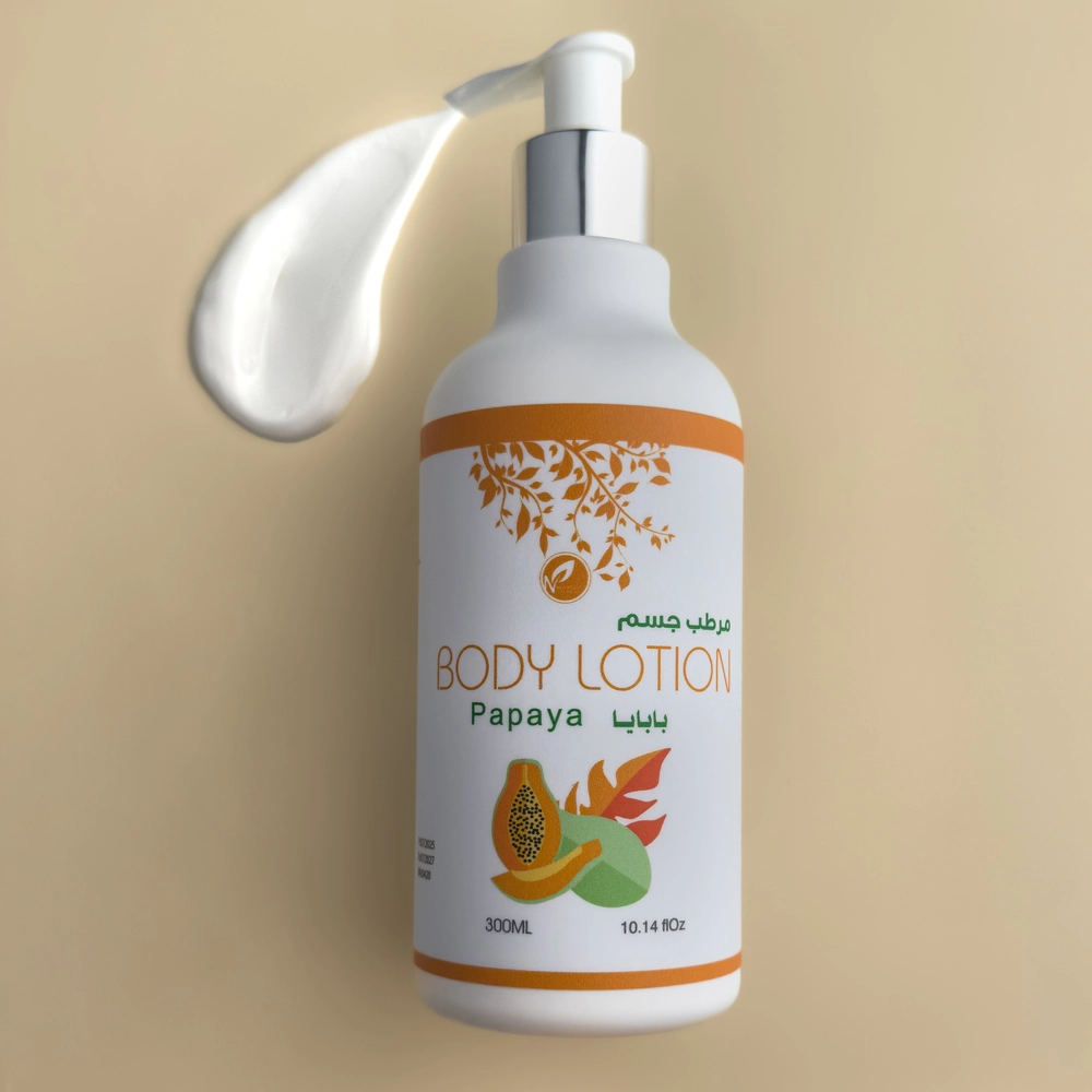 لوشن للجسم بخلاصة البابايا مع زيت الأفوكادو وزيت الأرجان و زيت اللوز الحلو و خلاصة البابايا وفيتامين E تركيبة فريدة وغنية لترطيب بشرتك.