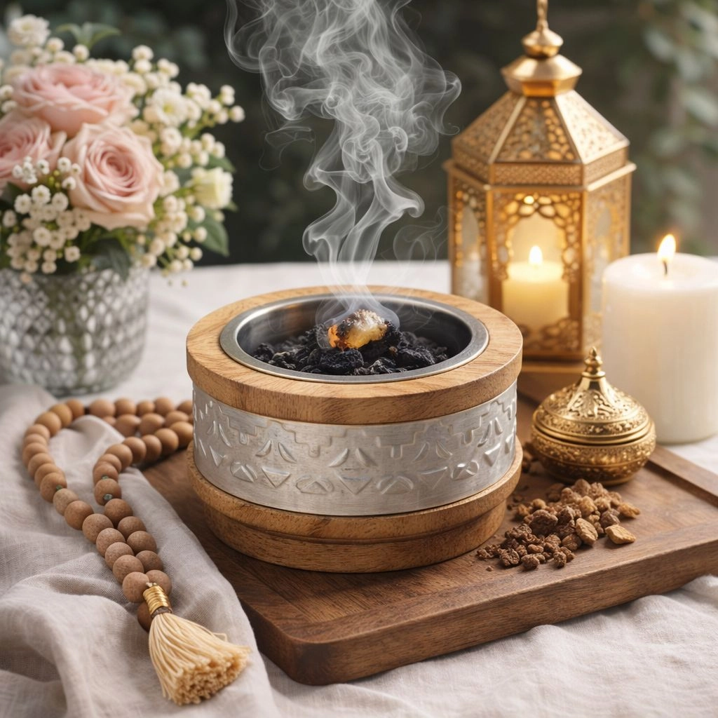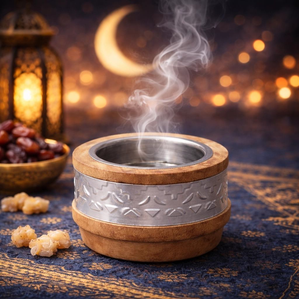 مبخرة خشبية ميني بنقشة فضية