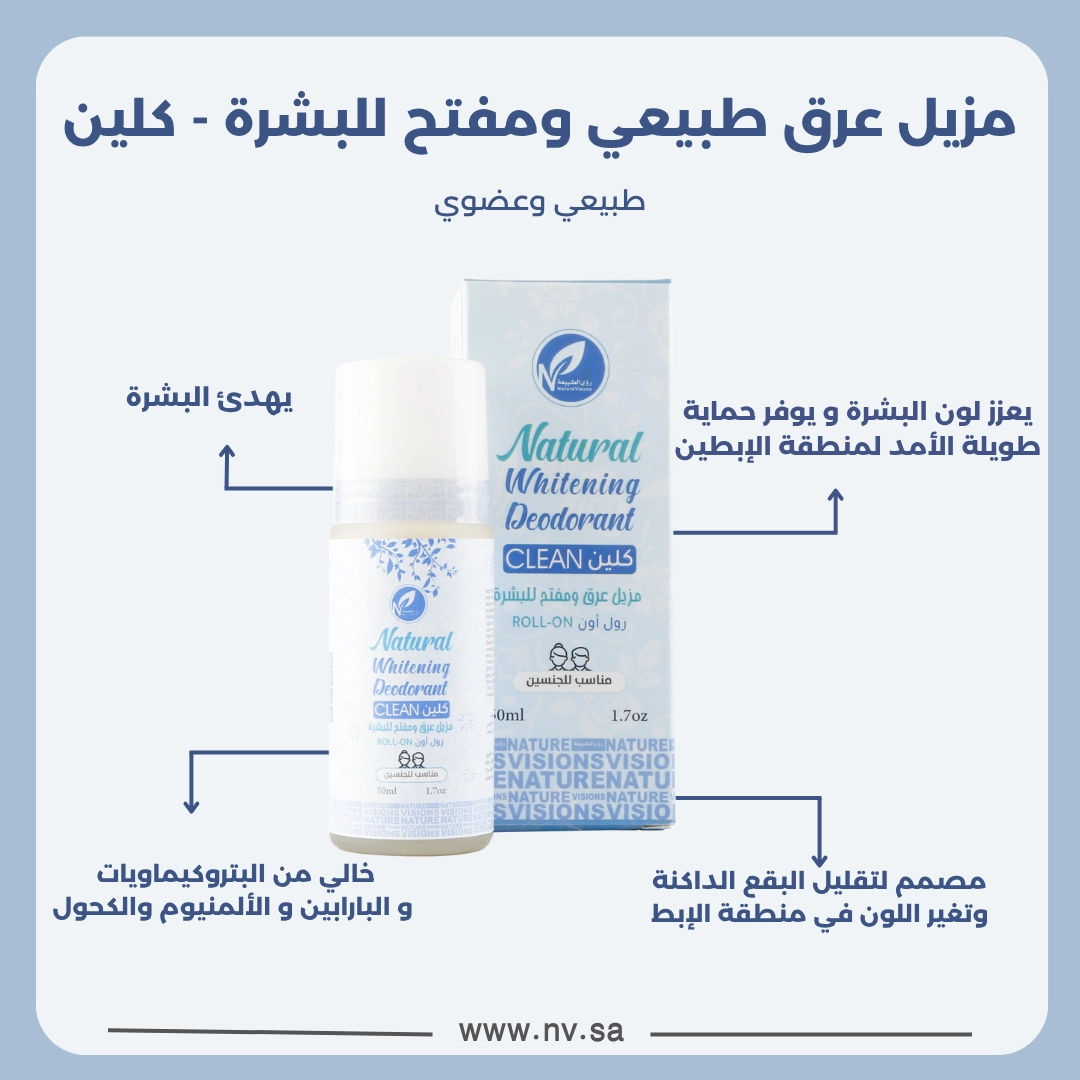 مزيل عرق طبيعي ومفتح للبشرة - كلين من رؤى الطبيعة تركيبة غنية بالخلاصات الطبيعية