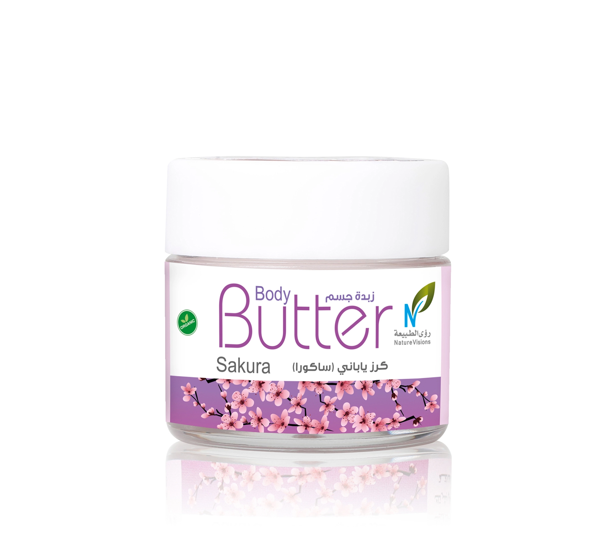 زبدة الجسم بتركيبة فريدة من خلاصة الكرز الياباني مع زيت الأفوكادو وزيت الزيتون وزيت الجوجوبا وفيتامين E ؛ لتعطي بشرتك الغذاء المتكامل والحماية الفائقة