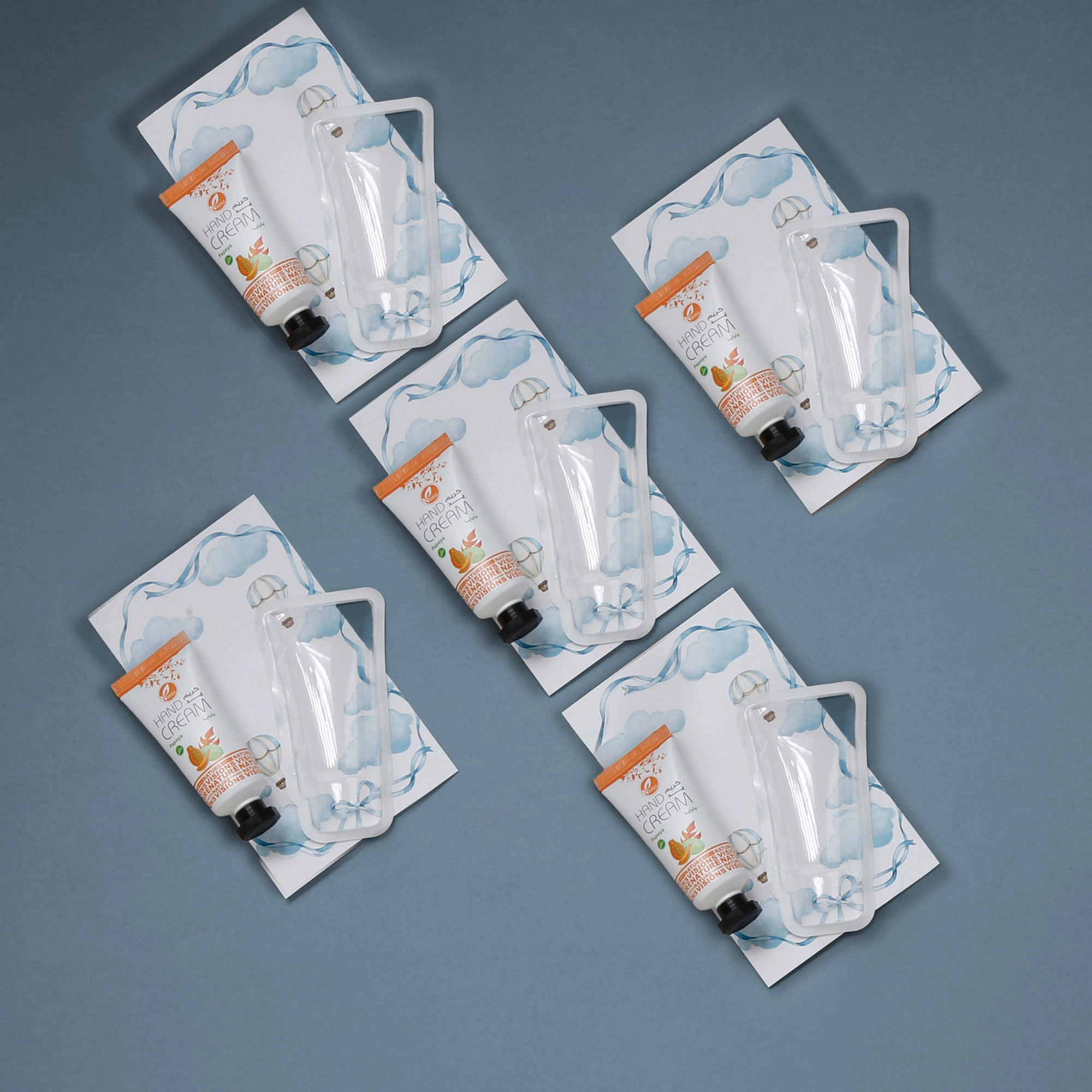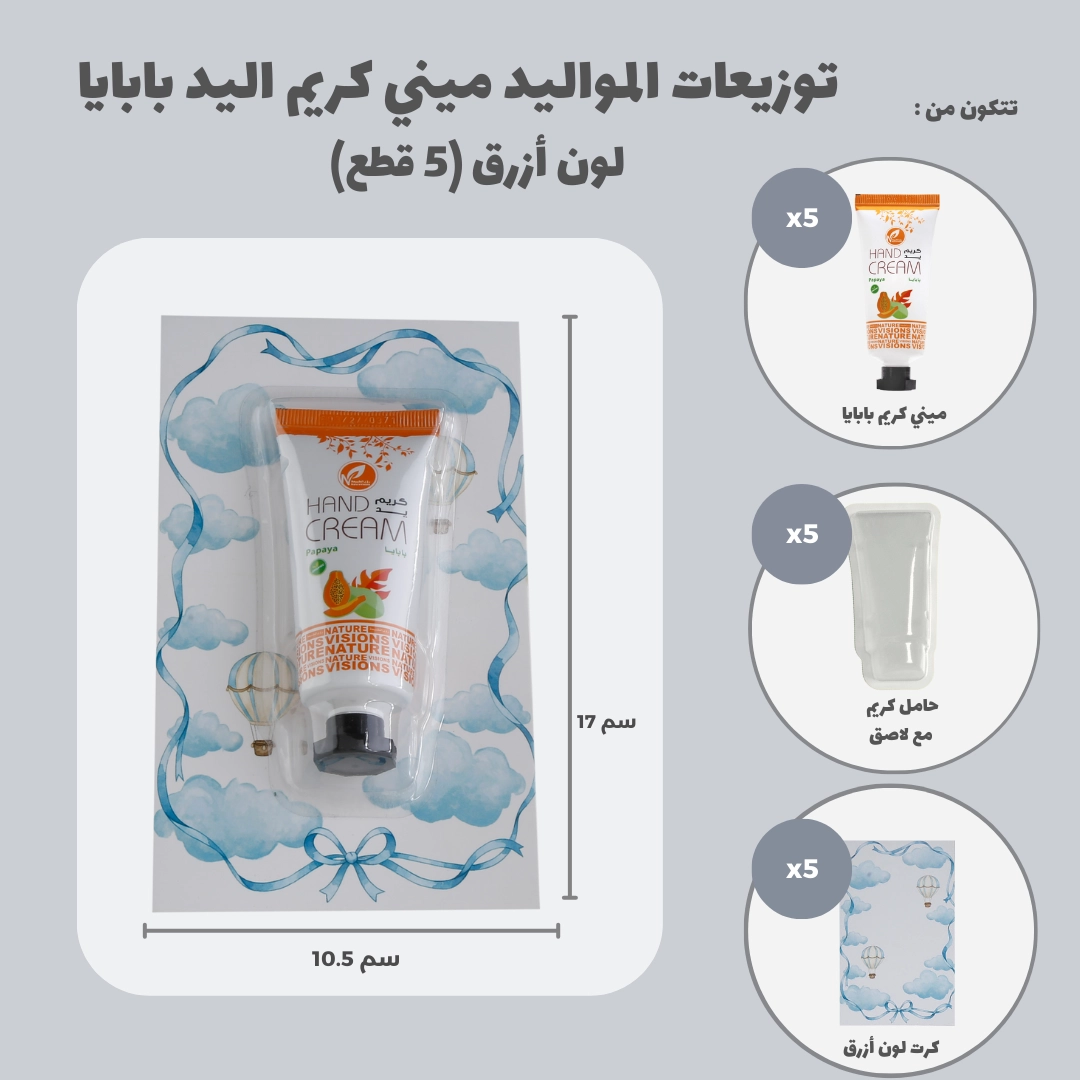 مجموعة توزيعات المواليد لون أزرق بدون نصوص - ميني كريم اليد بابايا ( 5 قطع )، مناسب لتوزيعات الهدايا و المناسبات.