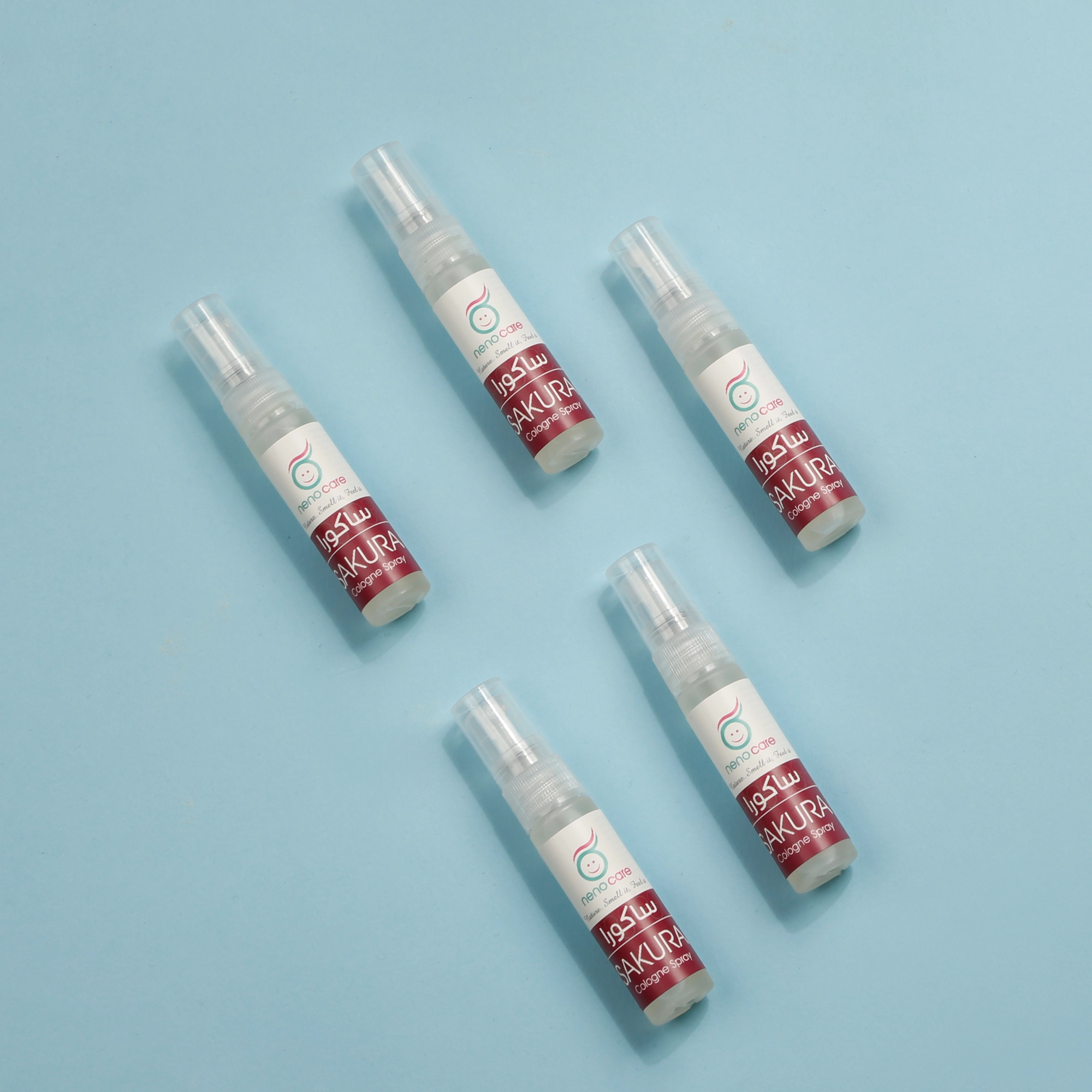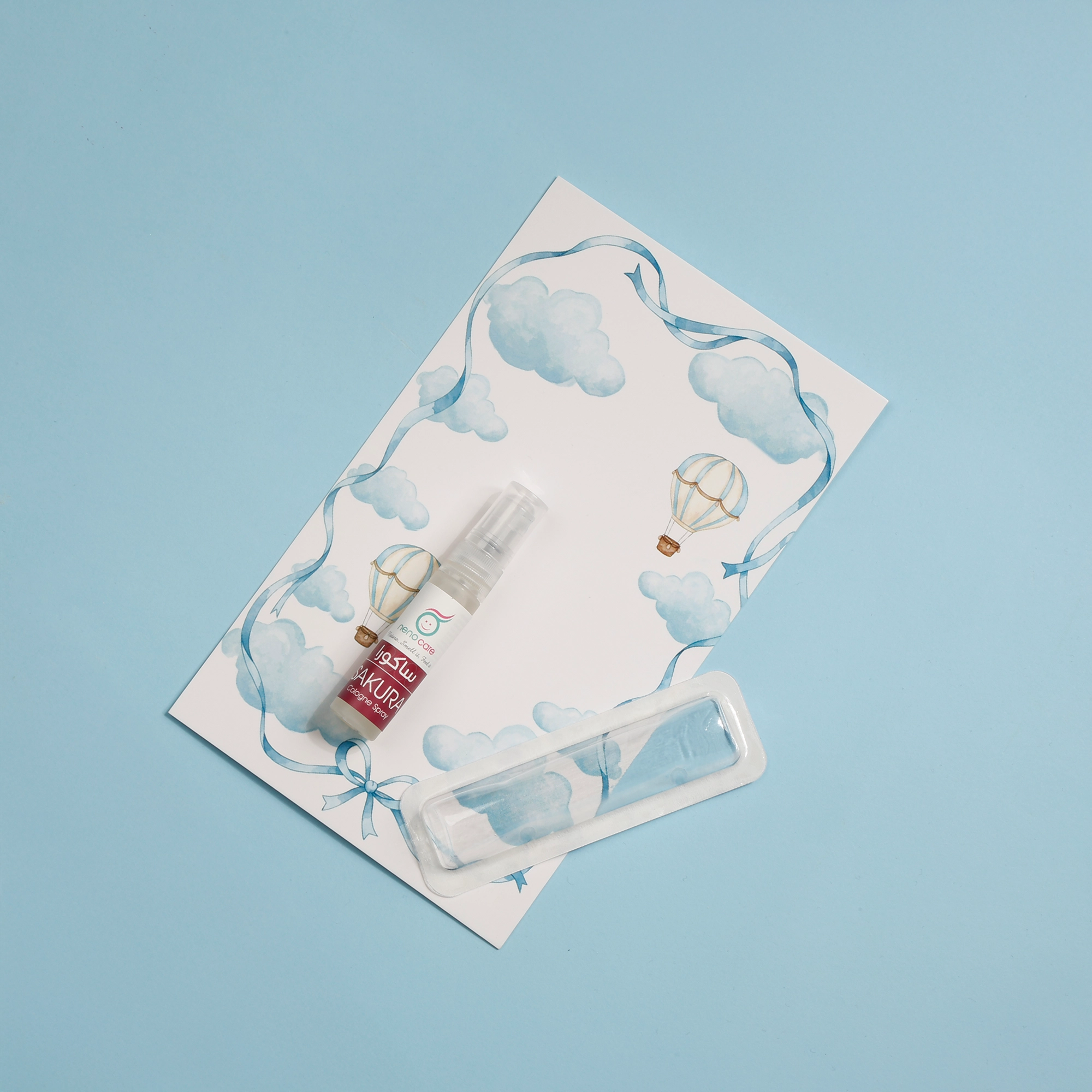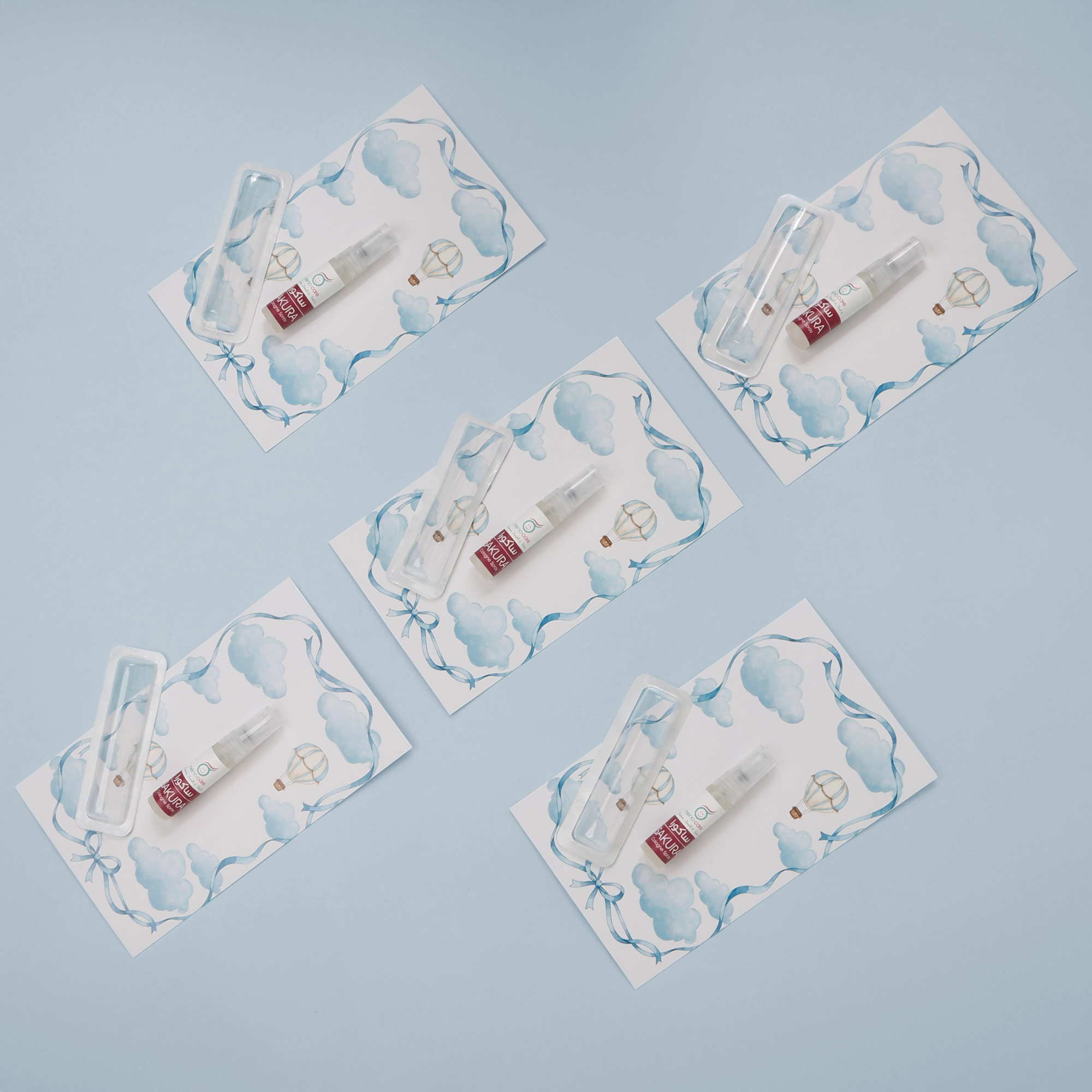 مجموعة توزيعات المواليد لون أزرق بدون نصوص - ميني عطر ساكورا ( 5 قطع )، مناسب لتوزيعات الهدايا و المناسبات.