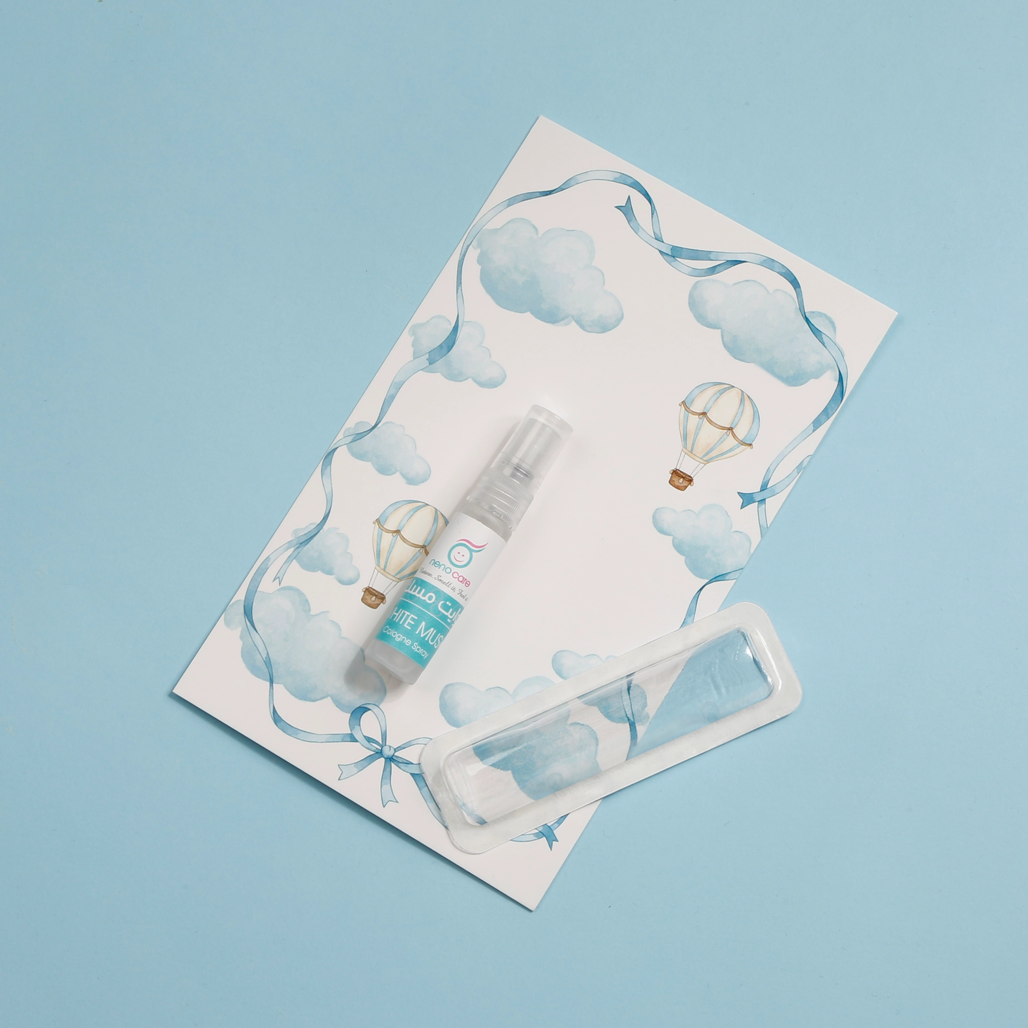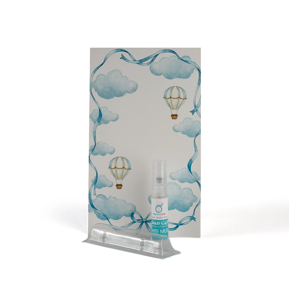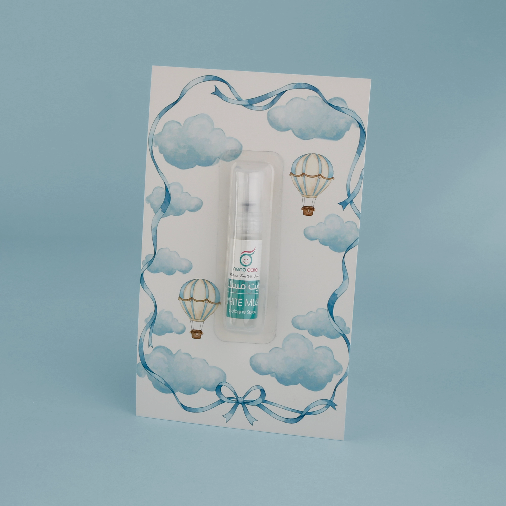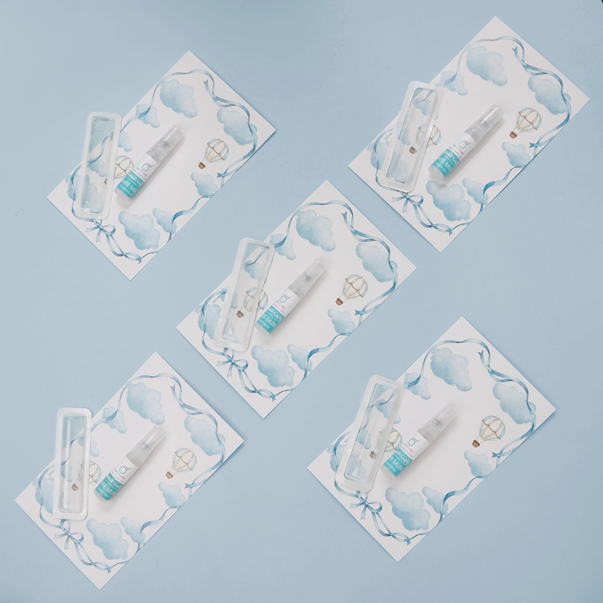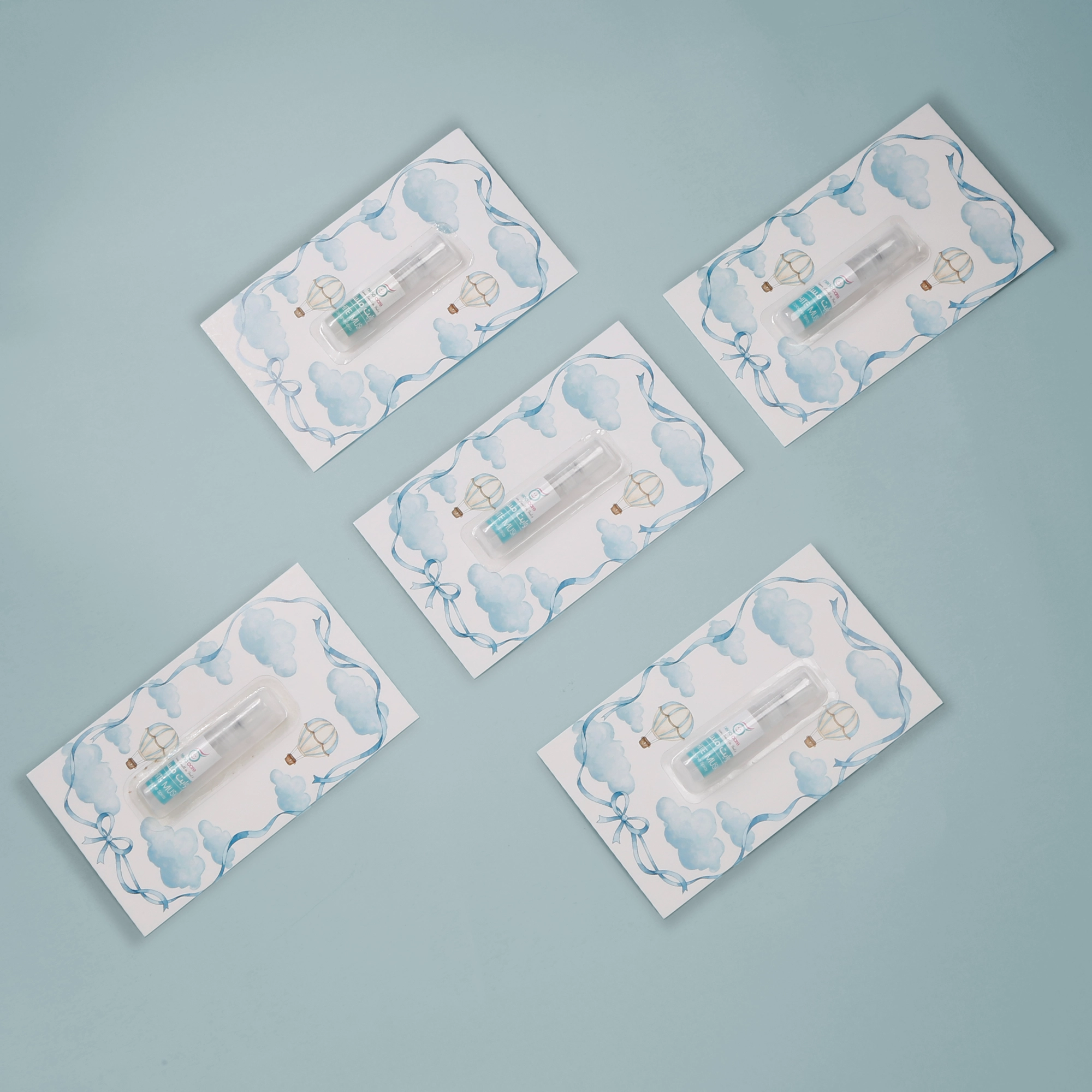 مجموعة توزيعات المواليد لون أزرق بدون نصوص - ميني عطر وايت مسك ( 5 قطع )، مناسب لتوزيعات الهدايا و المناسبات.
