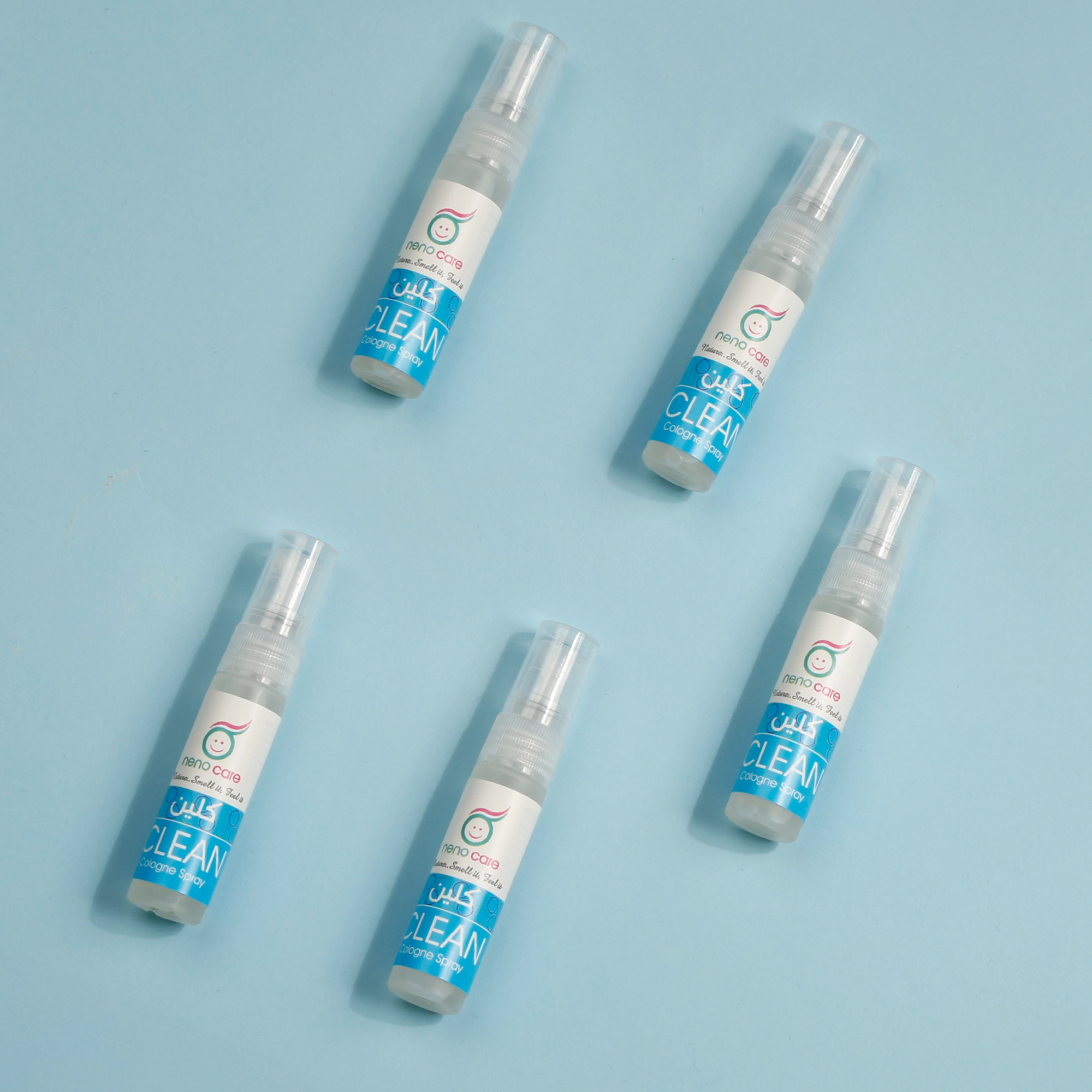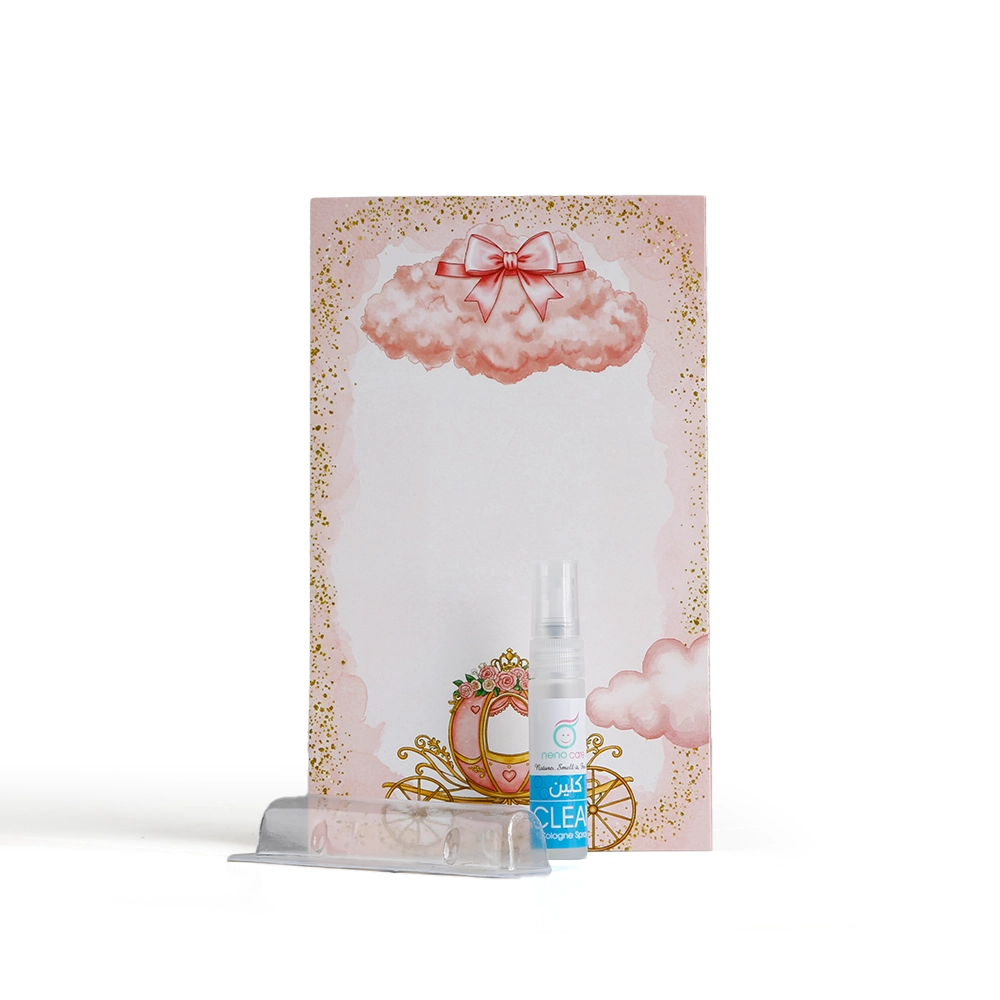 مجموعة توزيعات المواليد لون وردي بدون نصوص - ميني عطر كلين ( 5 قطع )، مناسب لتوزيعات الهدايا و المناسبات.