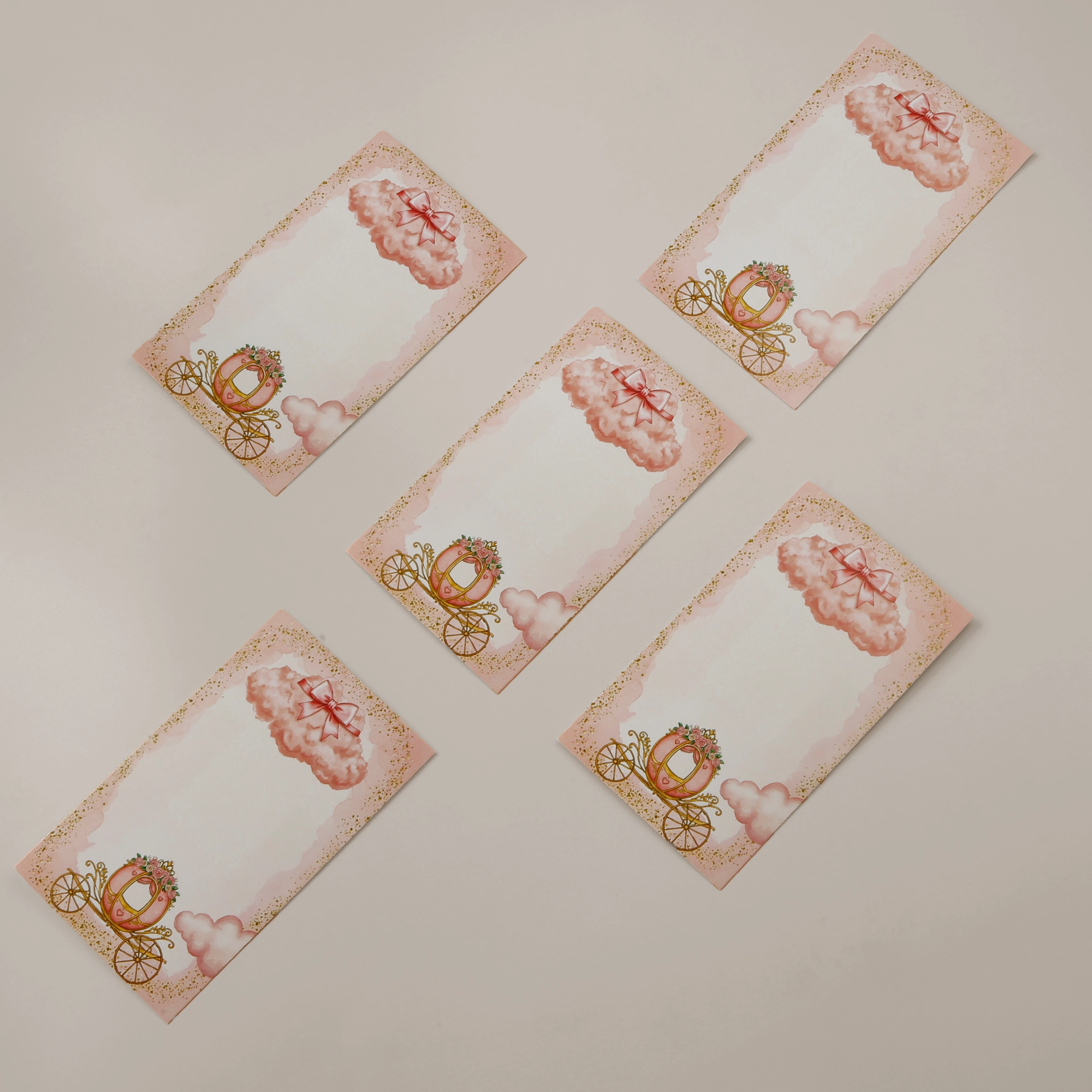 - كرت توزيعات المواليد لون وردي بدون نصوص - مستطيل - 5 كروت