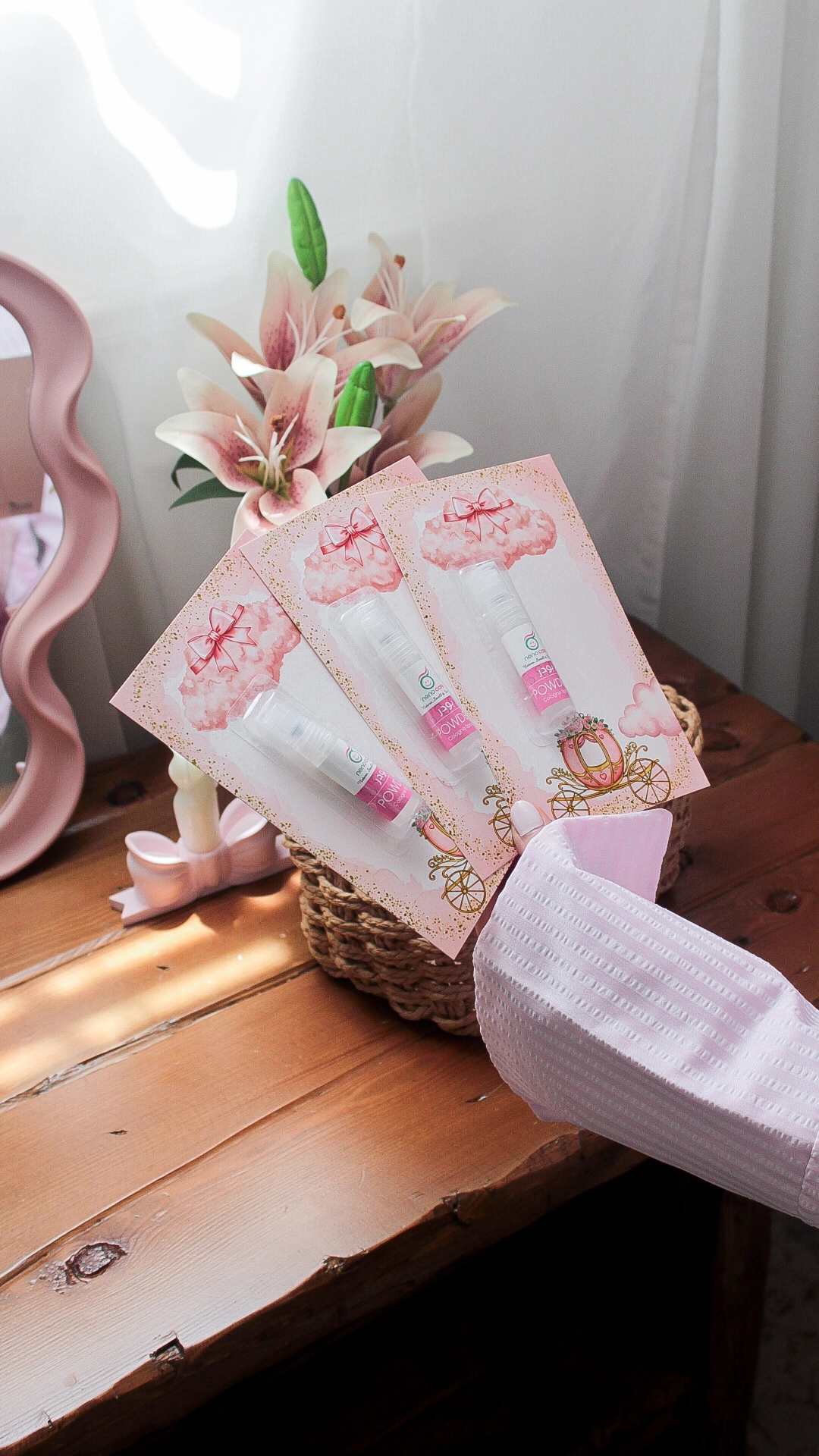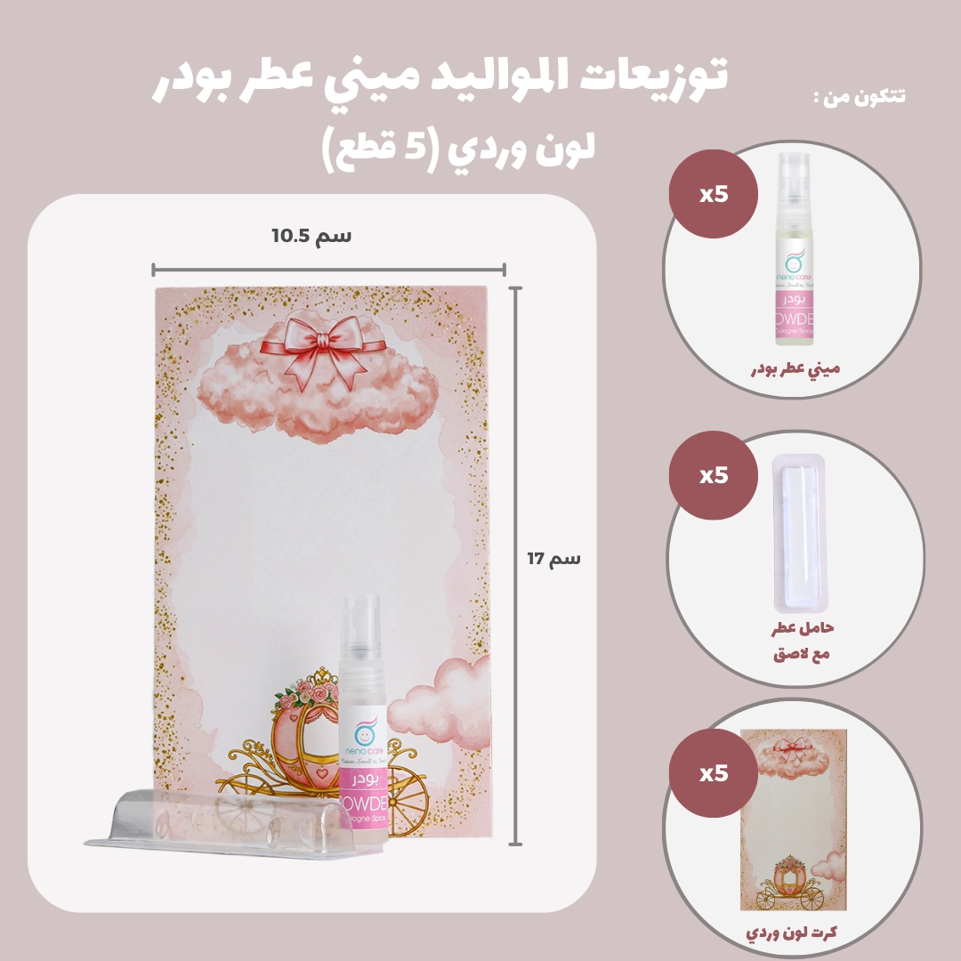 توزيعات المواليد لون وردي بدون نصوص - ميني عطر بودر ( 5 قطع )، مناسب لتوزيعات الهدايا و المناسبات.