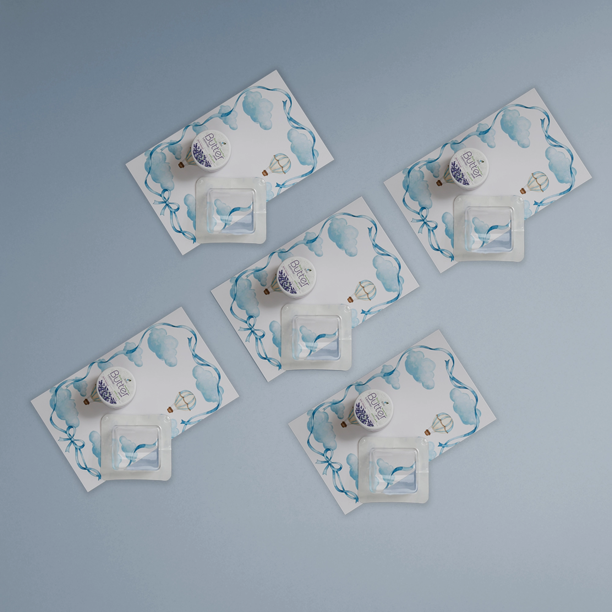 مجموعة توزيعات المواليد لون أزرق بدون نصوص - ميني زبدة الجسم لافندر ( 5 قطع )