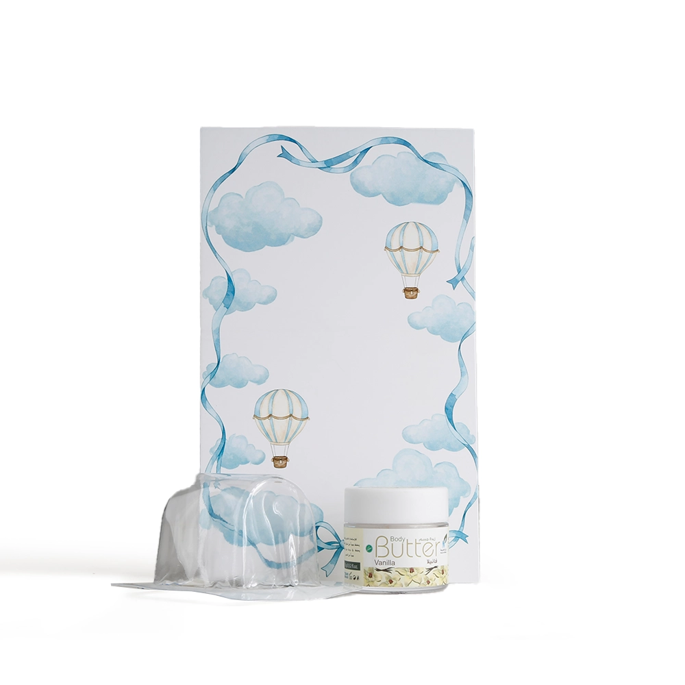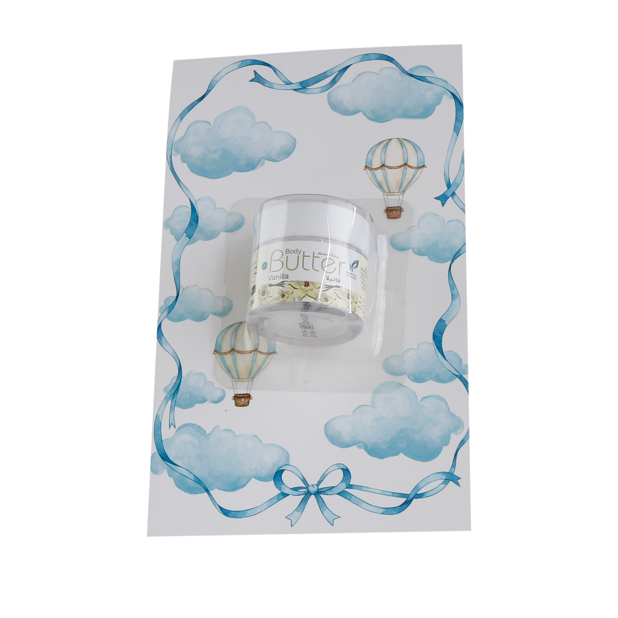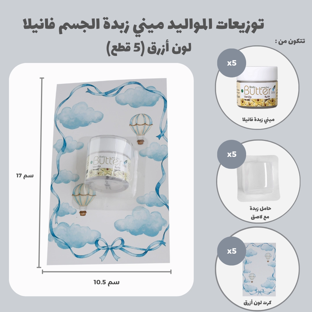 مجموعة توزيعات المواليد لون أزرق بدون نصوص - ميني زبدة الجسم فانيلا ( 5 قطع )