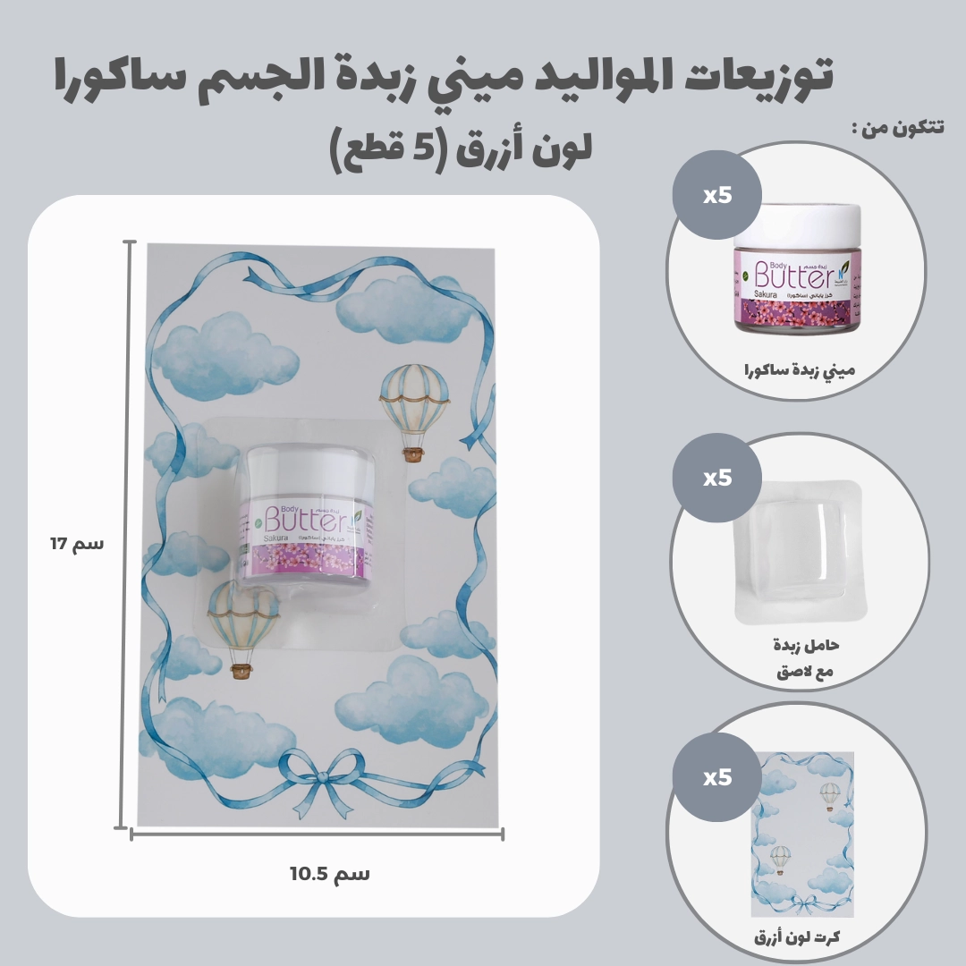 مجموعة توزيعات المواليد لون أزرق بدون نصوص - ميني زبدة الجسم ساكورا ( 5 قطع )، مناسب لتوزيعات الهدايا و المناسبات.
