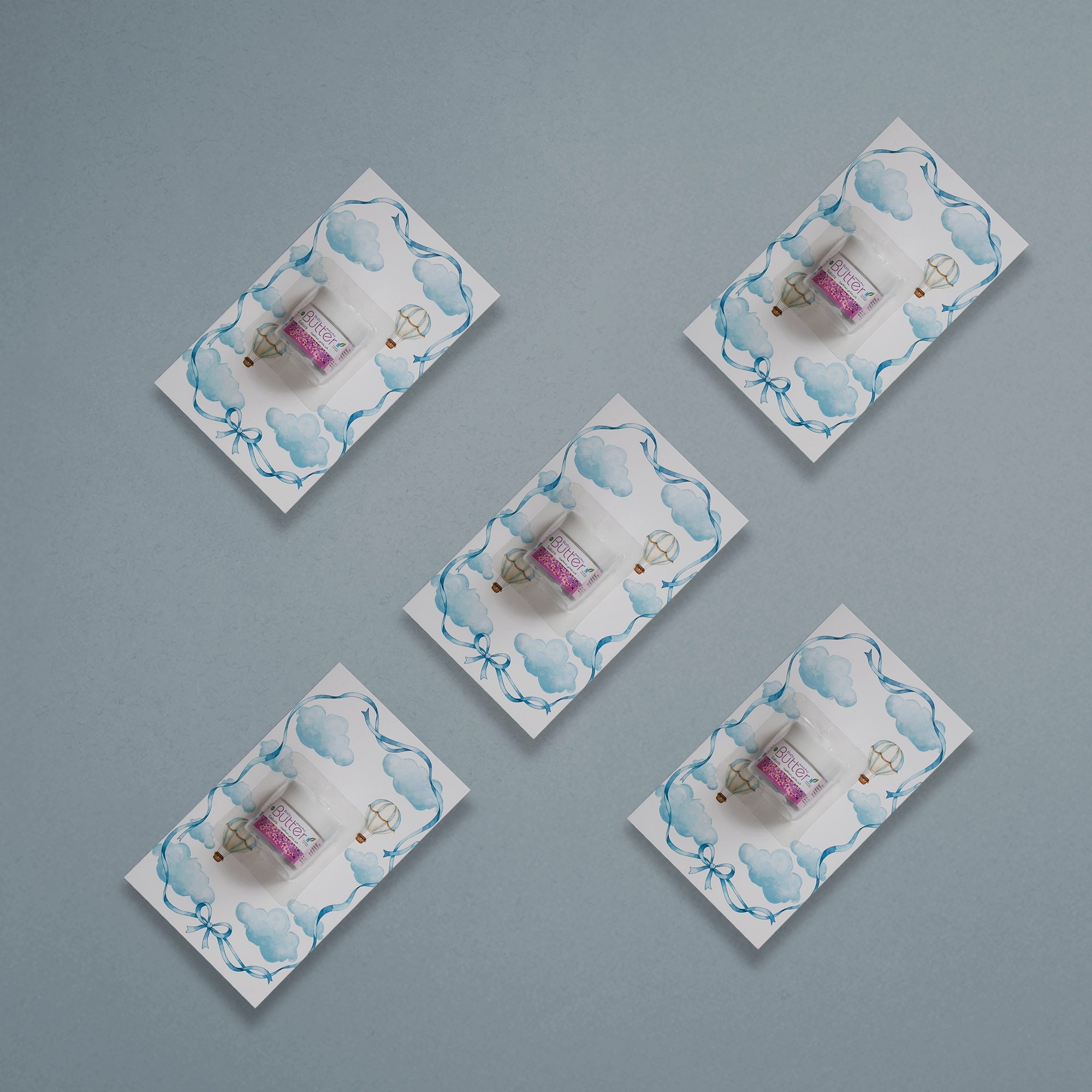 - كرت توزيعات المواليد لون أزرق بدون نصوص - مستطيل - 5 كروت